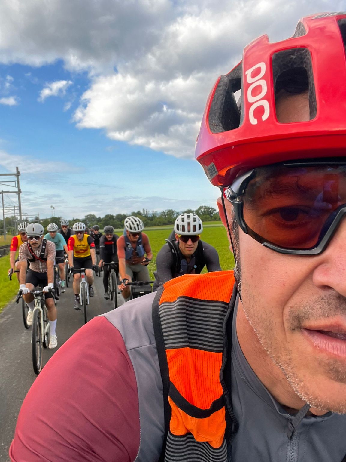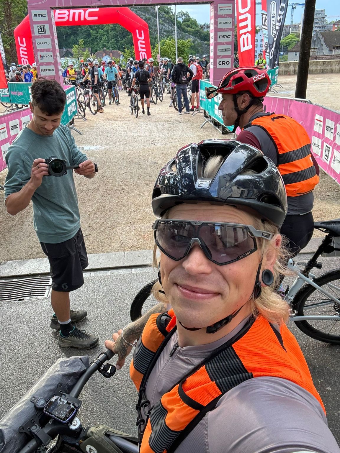 Alle, die ich aus der Velo Community so kenne. Es ist immer wieder schön, mit diesen Menschen unterwegs zu sein. Da es kein Rennen ist, ist es auch etwas ausgelassener, und es entwickeln sich unterwegs gute Gespräche. Als Vorfahrer war ich dann alleine die ersten paar Kilometer an der Front, bevor wir dann als 30er Gruppe zusammen losgeprescht sind.
