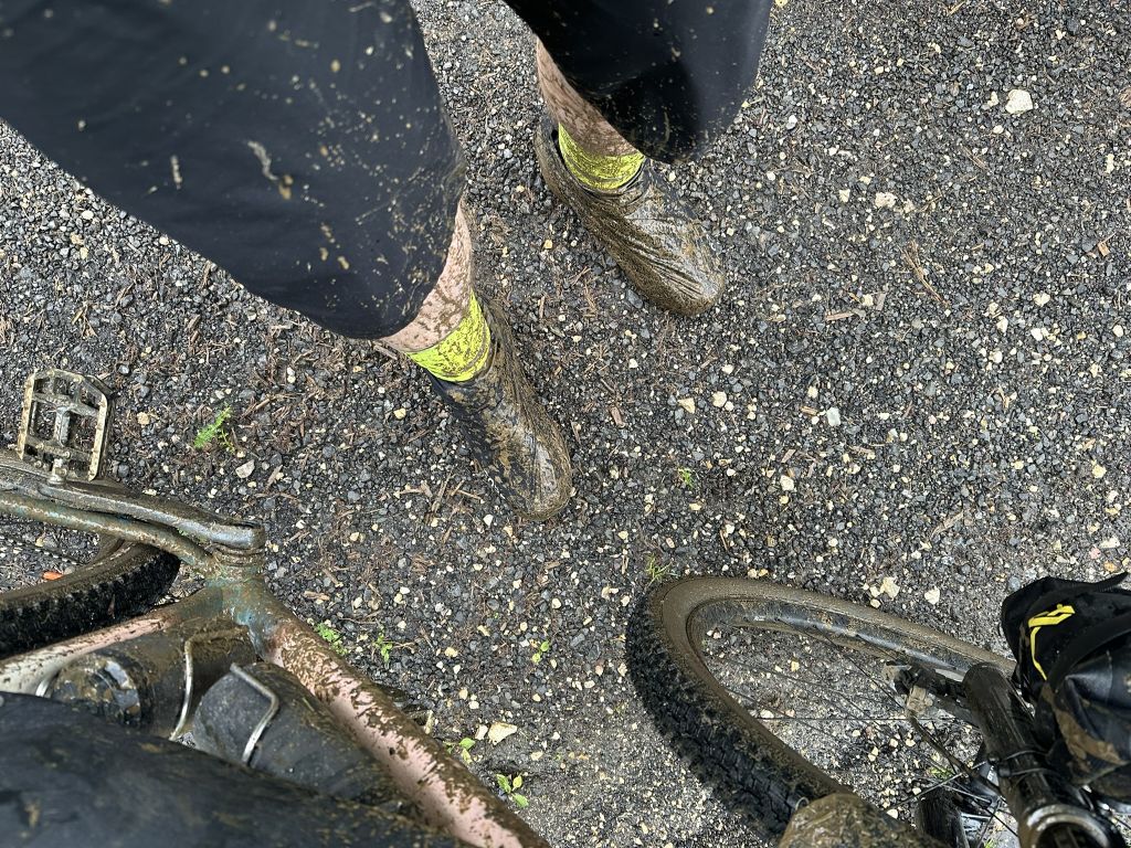 2024: Mit harten Carbonsohlen und Cleats das Velo eine Stunde lang über Matsch und Steine bergauf zu schieben. 2025: Die Kombination aus Kälte, starkem Gegenwind und Magenbeschwerden (weil ich einen Sportdrink nicht vertragen habe).