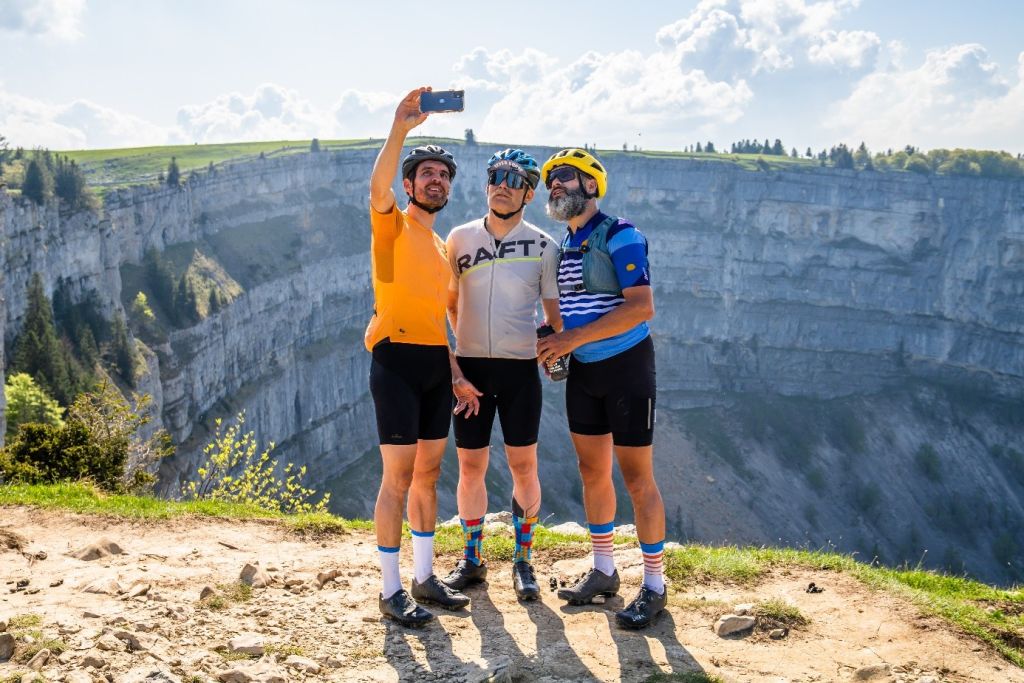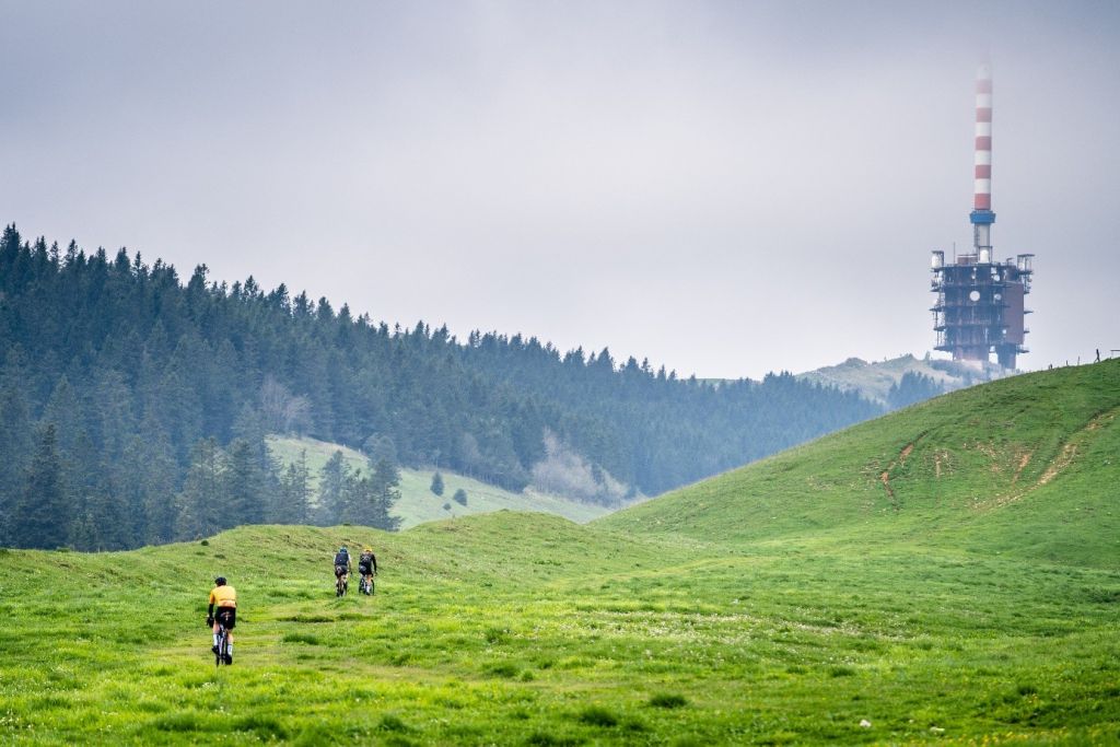 Umso willkommener ist der neue und gut rollende Streckenteil ab Gänsbrunnen. Via Moutier (das Berner Dorf, welches ab dem 1.1.2026 zum Kanton Jura gehört) führt die Strecke ins Val de Tavannes, vorbei an der weltberühmten „Tête de Moine-Käserei“, durch Täler und über Höhenzüge bis nach Courtelary, wo die beliebte Camille Bloch-Schoggi herkommt. Ein lang gezogener Anstieg führt schlussendlich auf die Höhe des Chasseral-Grats, dem höchsten Punkt der GTJ. Auf 1606 Meter über Meer geniesst man ein atemberaubendes 360°-Panorama. Im Norden reicht der Blick zurück zu den typischen Waldweiden des Juras und den grössten Windpark der Schweiz, der zwischen Mont-Crosin und Mont-Soleil liegt. Auf der Südseite lassen sich die Schönheit der drei Seen (Biel, Neuenburg und Murten) bewundern.